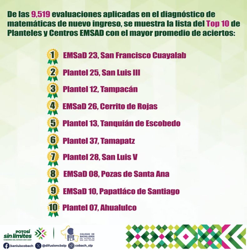 En cumplimiento a las indicaciones del Gobernador del Estado, Lic. Ricardo Gallardo Cardona, y del Director General del Colegio de Bachilleres, Dr. Ricardo Daniel Centeno Trejo, se aplicó el Diagnóstico Estatal de Matemáticas a 9,519 estudiantes de nuevo ingreso, con el objetivo de fortalecer el aprovechamiento en Pensamiento Matemático.