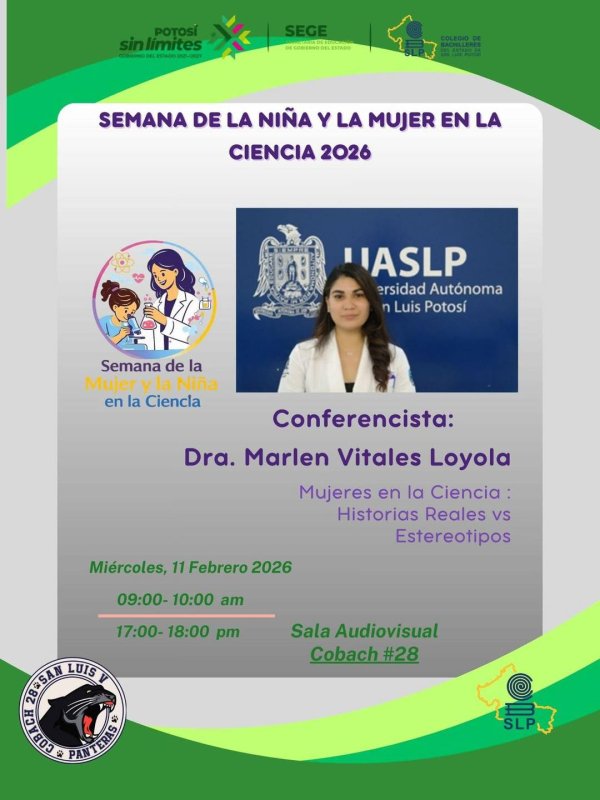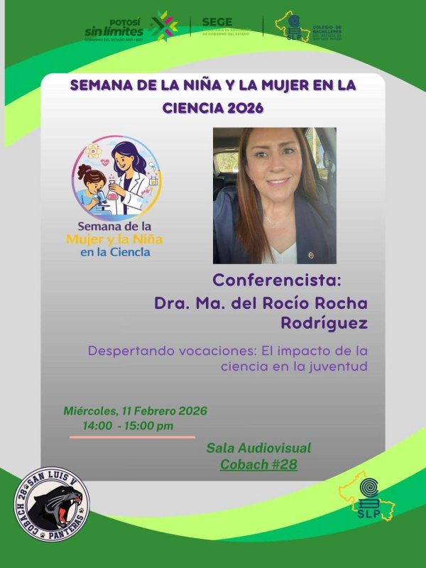 En el Colegio de Bachilleres del Estado de San Luis Potosí refrendamos nuestro compromiso con la igualdad y el impulso al talento científico, siendo la única institución de educación media superior en el estado que tiene calendarizada y conmemora esta semana dedicada a la Mujer y la Niña en la Ciencia.